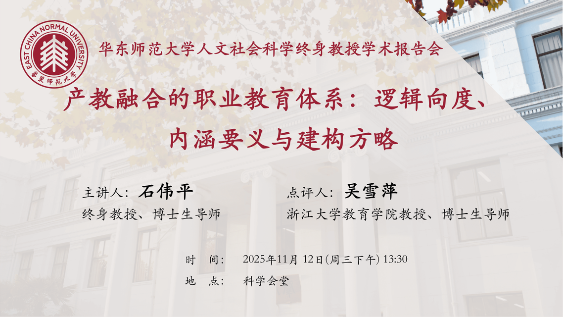 终身教授学术报告会 | 产教融合的职业教育体系:逻辑向度、内涵要义与建构方略